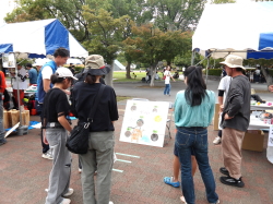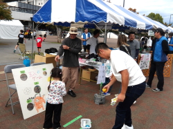 | 第50回山梨県林業まつりが小瀬スポーツ公園において開催され、同時開催のふるさと特産品まつり「森林のフェスティバル」には、当組合青年部が出展し、お子さん方を対象に、間伐材のコースターやなべしきを無料配布して、それにお絵描きして楽しんでいただきました。また、景品付き玉入れゲームも大盛況でした。 | |