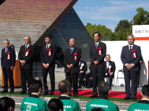 | 甲府市小瀬スポーツ公園体育館メインアリーナにおいて、恩賜林御下賜110周年記念大会が開催され、組合員及び従業員の皆様が表彰されました。 | |