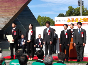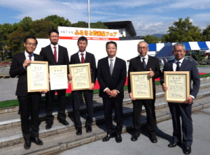 | 令和7年度山梨県林業まつりが小瀬スポーツ公園において開催され、同会場において、森林・林業・緑化表彰式が執り行われました。当組合からは、森林・林業関係功労者表彰に7名が受賞し、優良若年従事者表彰には1名が受賞しました。 | |